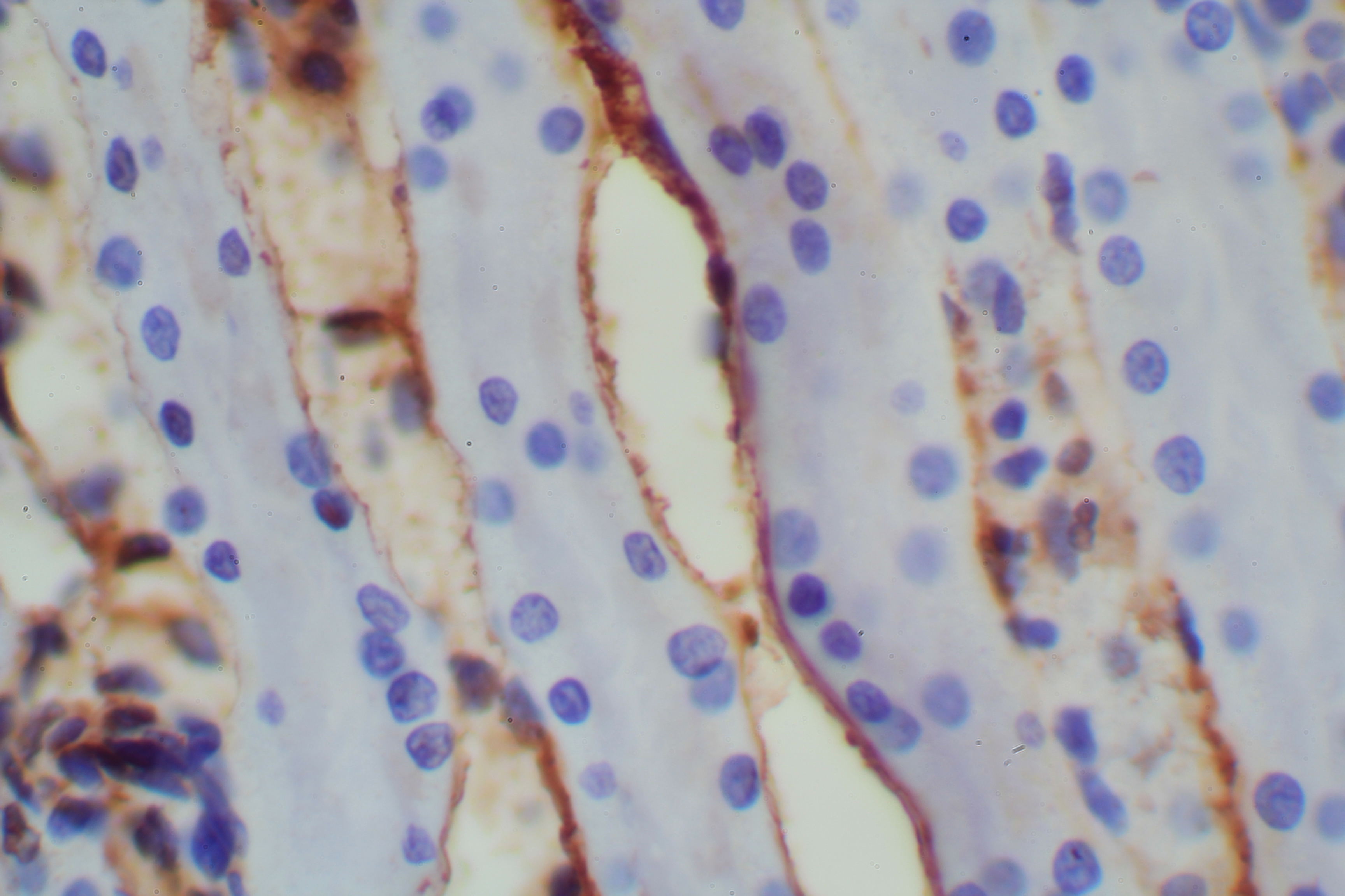 【作用原理】免疫組化實(shí)驗(yàn)中,組織與特異性一級(jí)抗體反應(yīng)后,用HRP酶結(jié)合物與一級(jí)抗體進(jìn)行結(jié)合,并放大鏈接信號(hào),最后用DAB染色液染色后使待測抗原在原有組織中標(biāo)記出來。